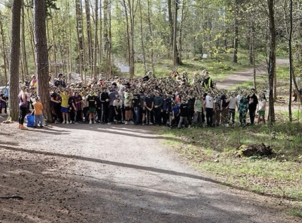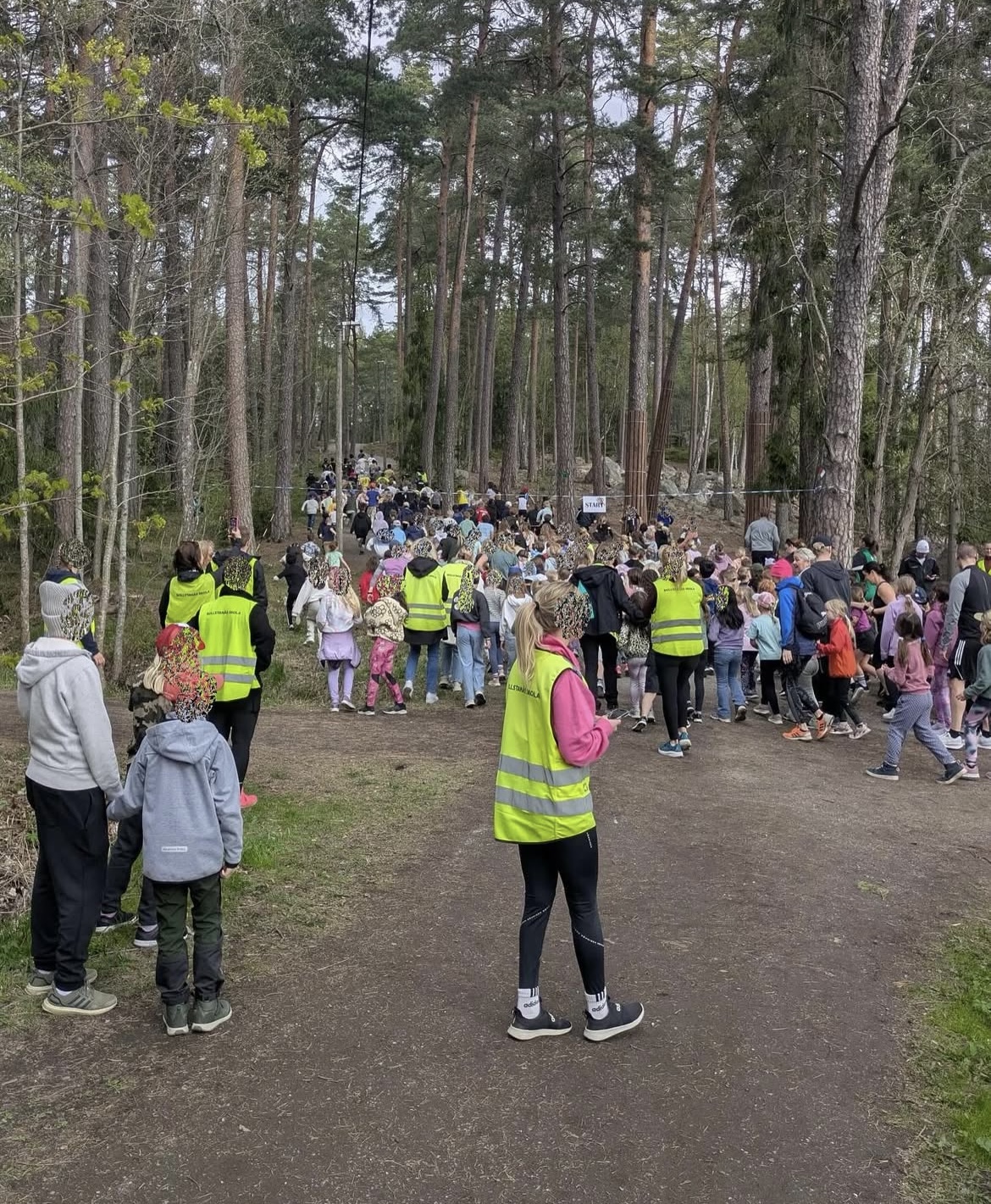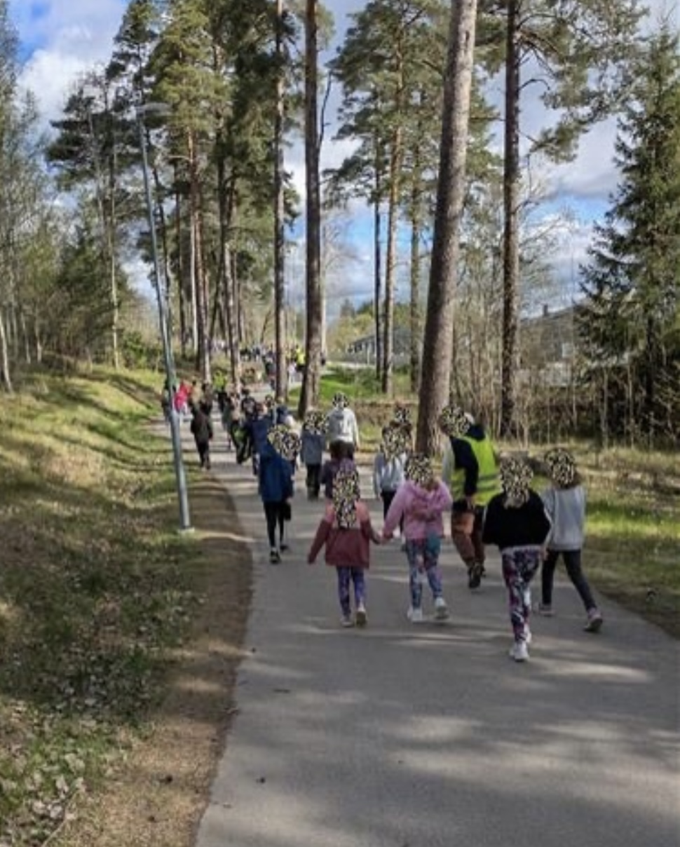 Alla klasser promenerade hela vägen till och från spåret.