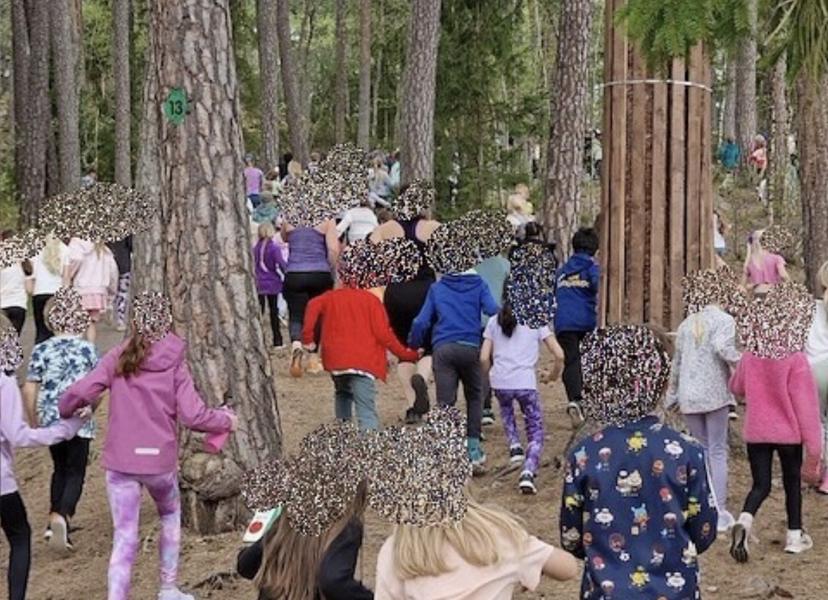 Starten har gått och alla barn är på väg uppför backen.