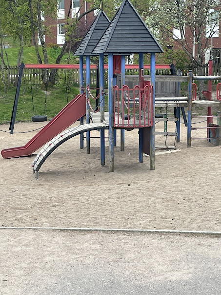 På lekplatsen leker vi under rasterna.