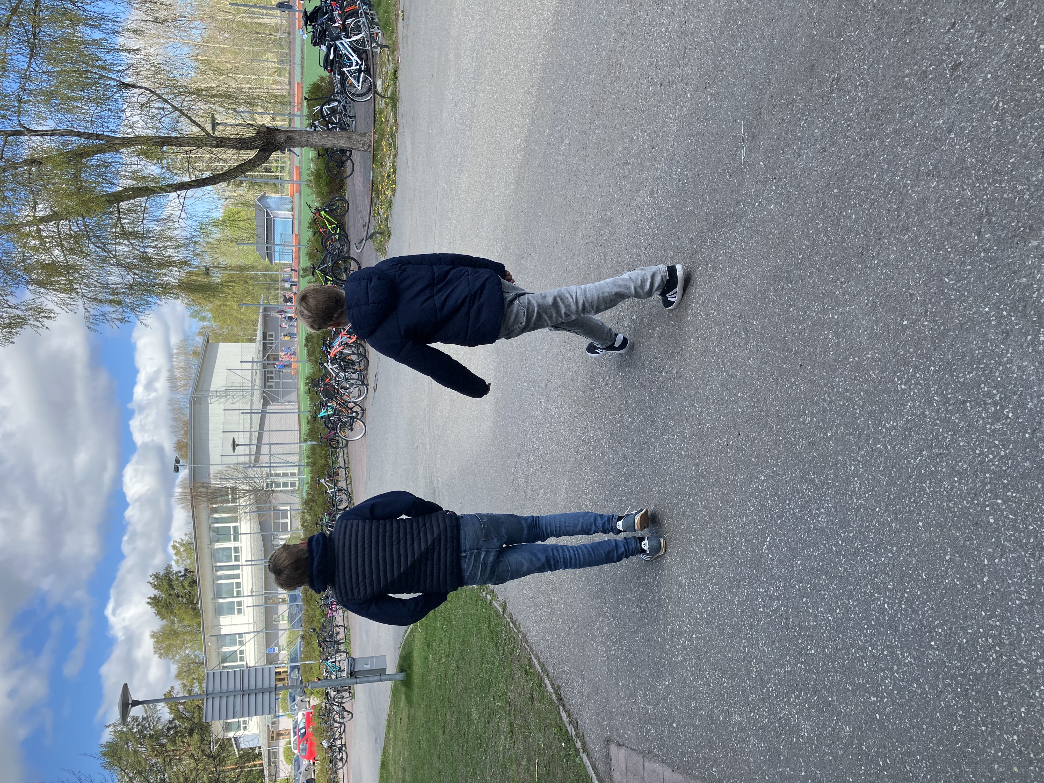 Två som är klara med första kvoten av matteuppgifter. Då fick man springa/gå runt skolan.