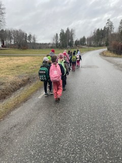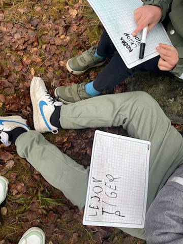 Vi var ute och gick och passade då på att ha utelektioner. Vi var i skogen några dagar, i en lekpark, på skolgården | ||