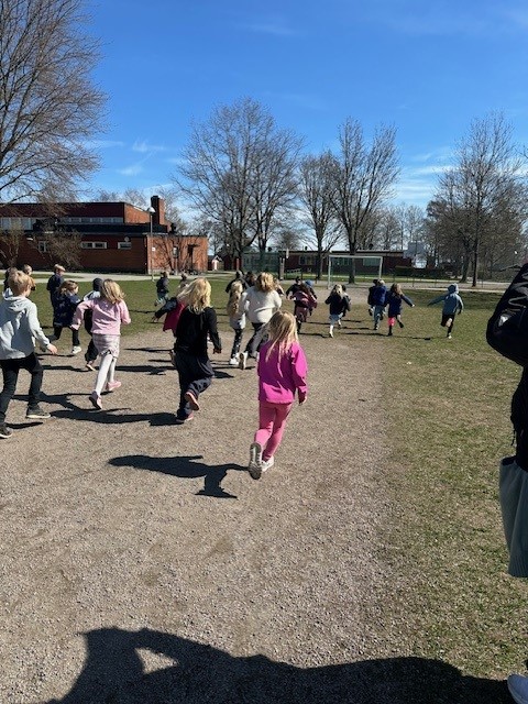 Under Aktiva veckan har förskoleklassen och åk 1 höjt pulsen tillsammans. Vi har bla gått promenader, spelat fotboll, lekt pulshöjande lekar och dansat. I klassrummet har åk 1 arbetat med temaområdet trafik. Imorgon fredag kör vi slutfinalen med rörelse och fredagsdans! | ||
