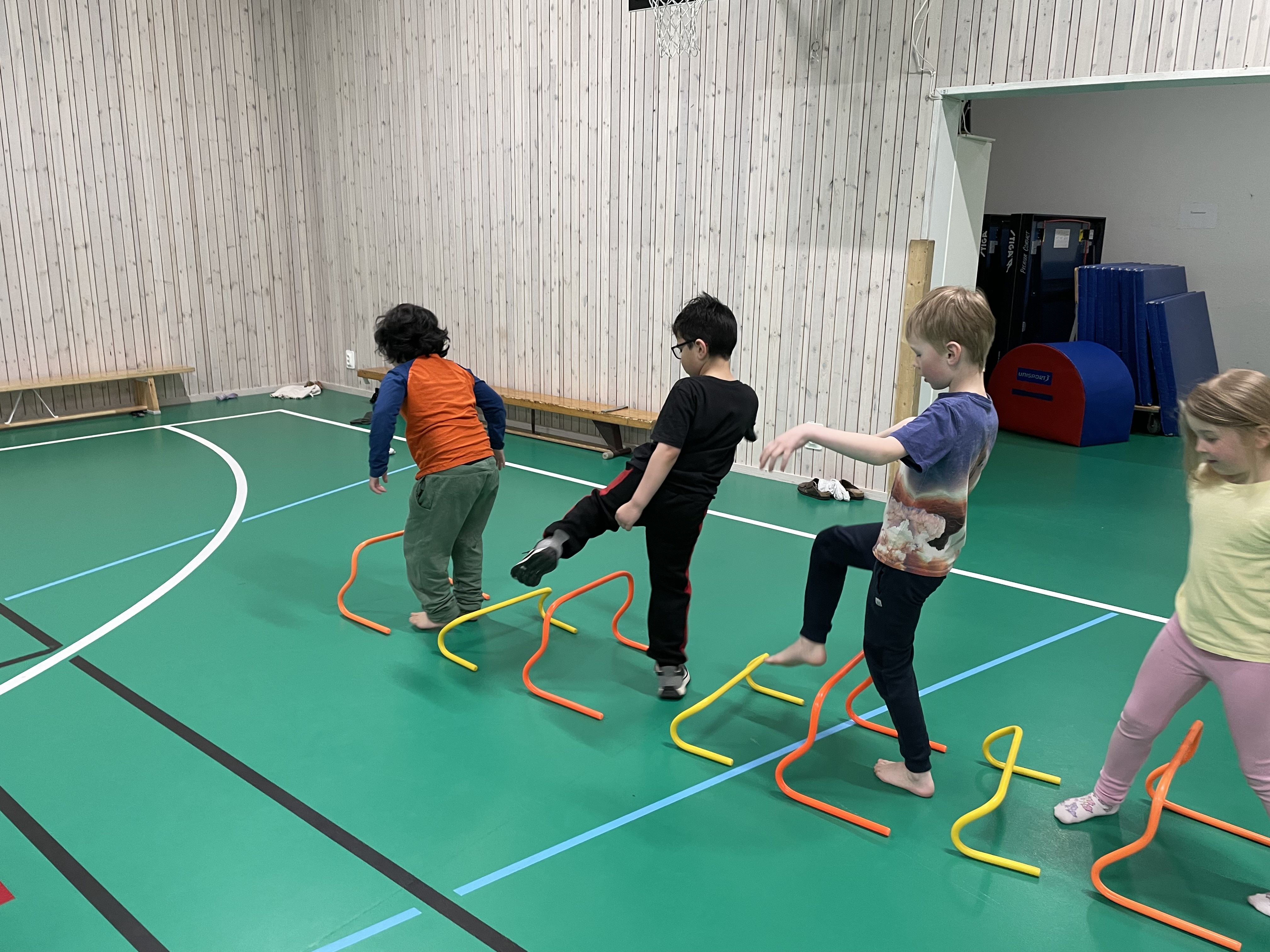 Hinderbana i idrottshallen var roligt.