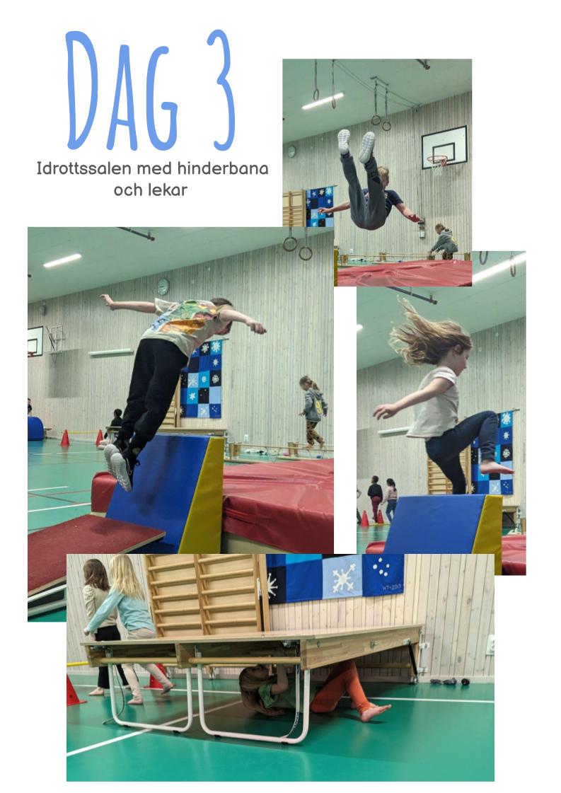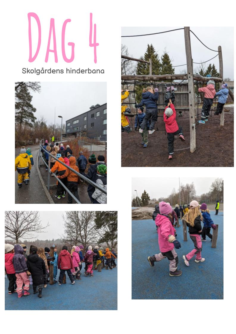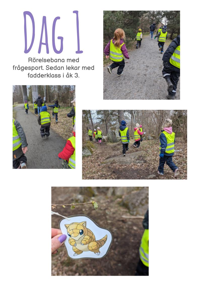 Rörelsebana med frågesport. Sedan lekar med fadderklass i åk 3.