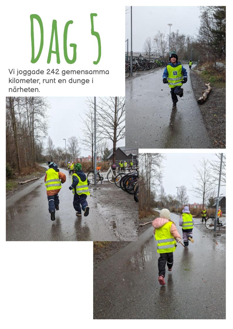 Flera varv i skolgårdens hinderbana trots snöoväder, så kul!