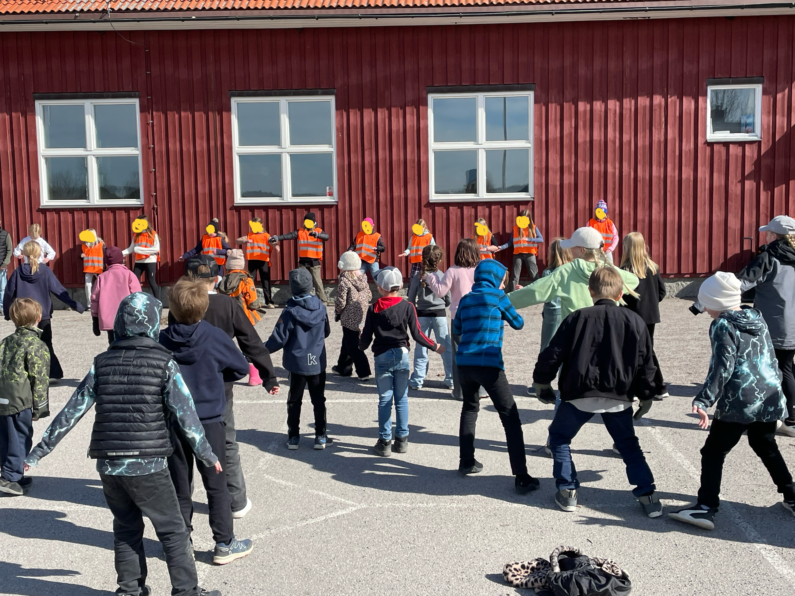 På skolan har vi Trivsel-Ledare som fått utbildning i att leda lekar och danser för att främja gemenskap och delaktighet. Här dansar vi TL-dansen.