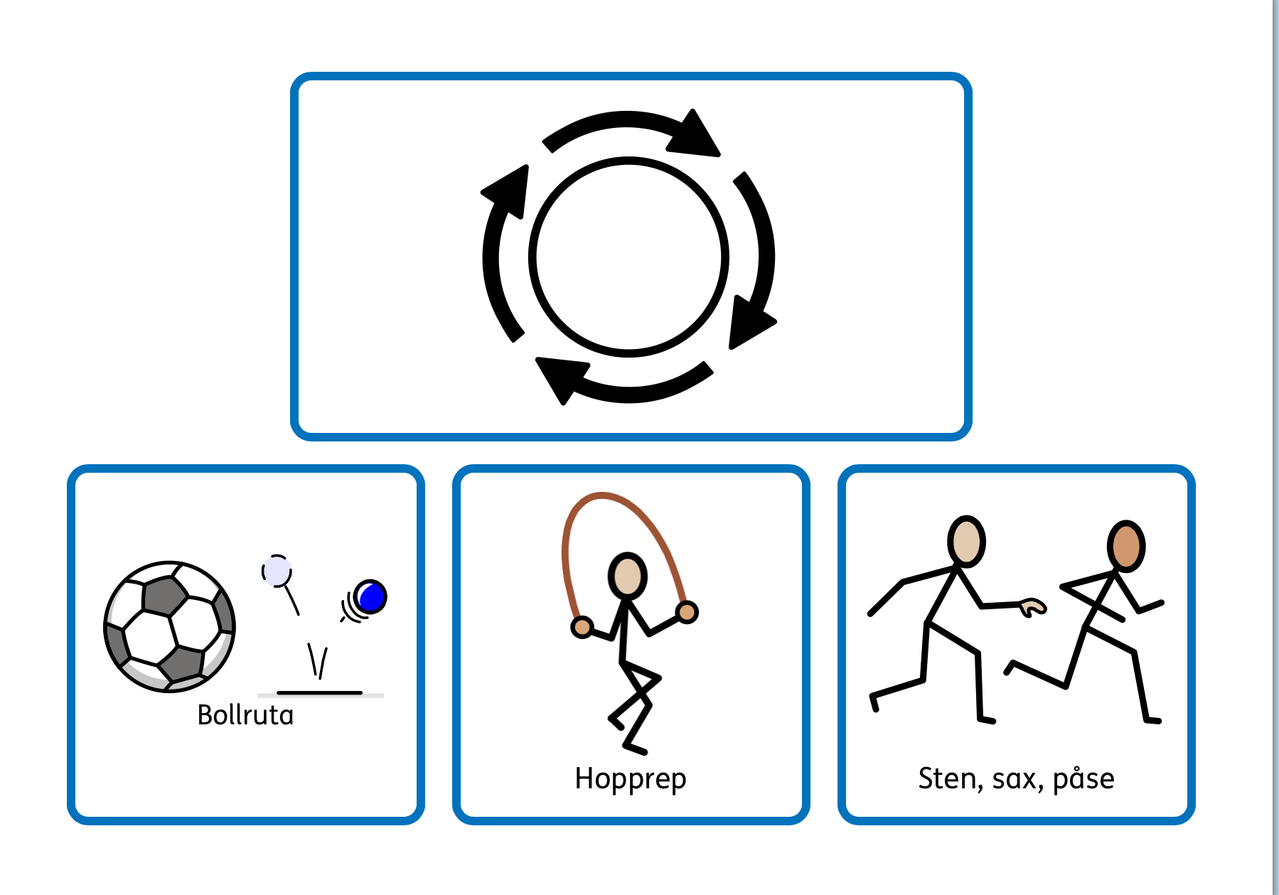 Rörelsestationer där barnen i 3 grupper cirkulerade vid varje station, 10 minuter vid varje station med olika aktiviteter.