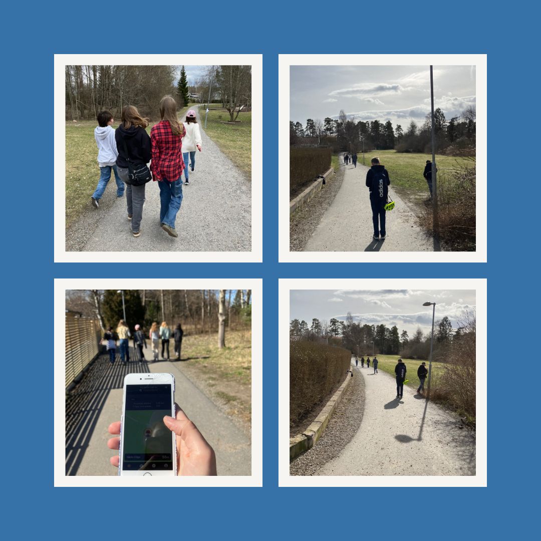 Här är vi ute på en förmiddagspromenad och eleverna fick testa på "Active quiz" för första gången. En succé!