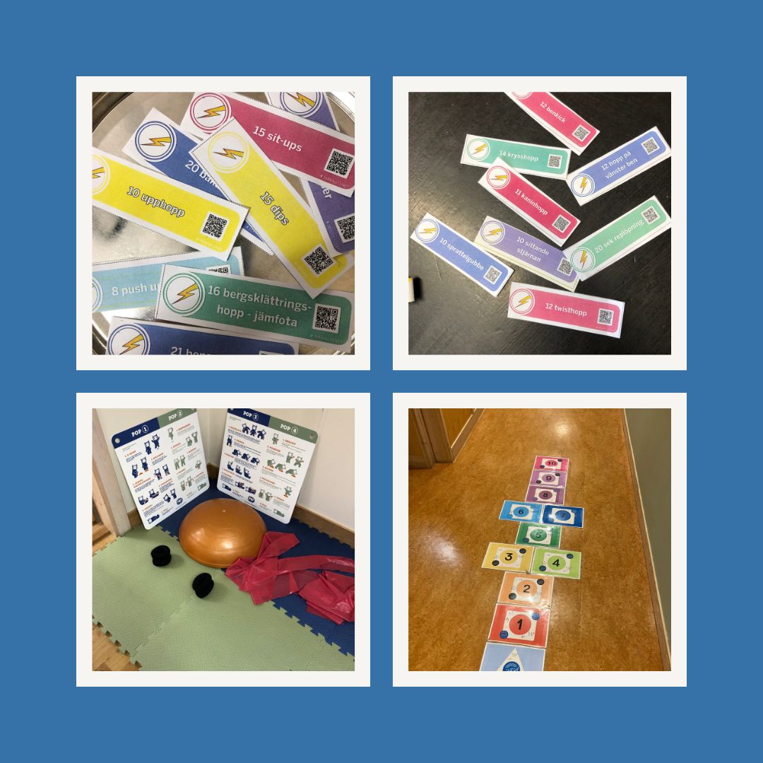 Rörelseburken, minigymmet och PEP-hagen användes flitigt under rörelsepauserna.