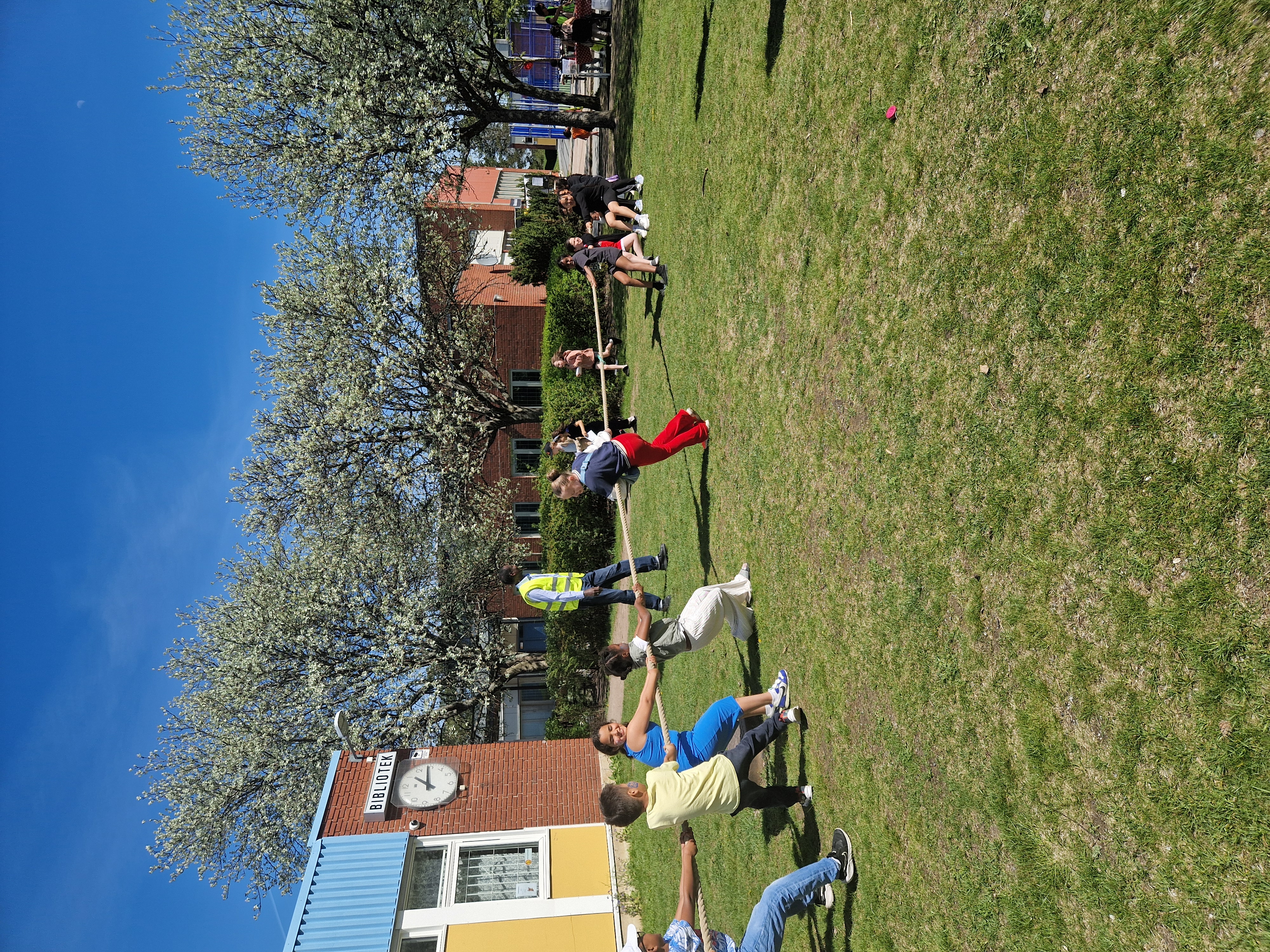 Vi har haft en superrolig dag full med roliga aktiviteter, bland annat dragkamp, dansstopp, hela havet stormar, handboll och basket.