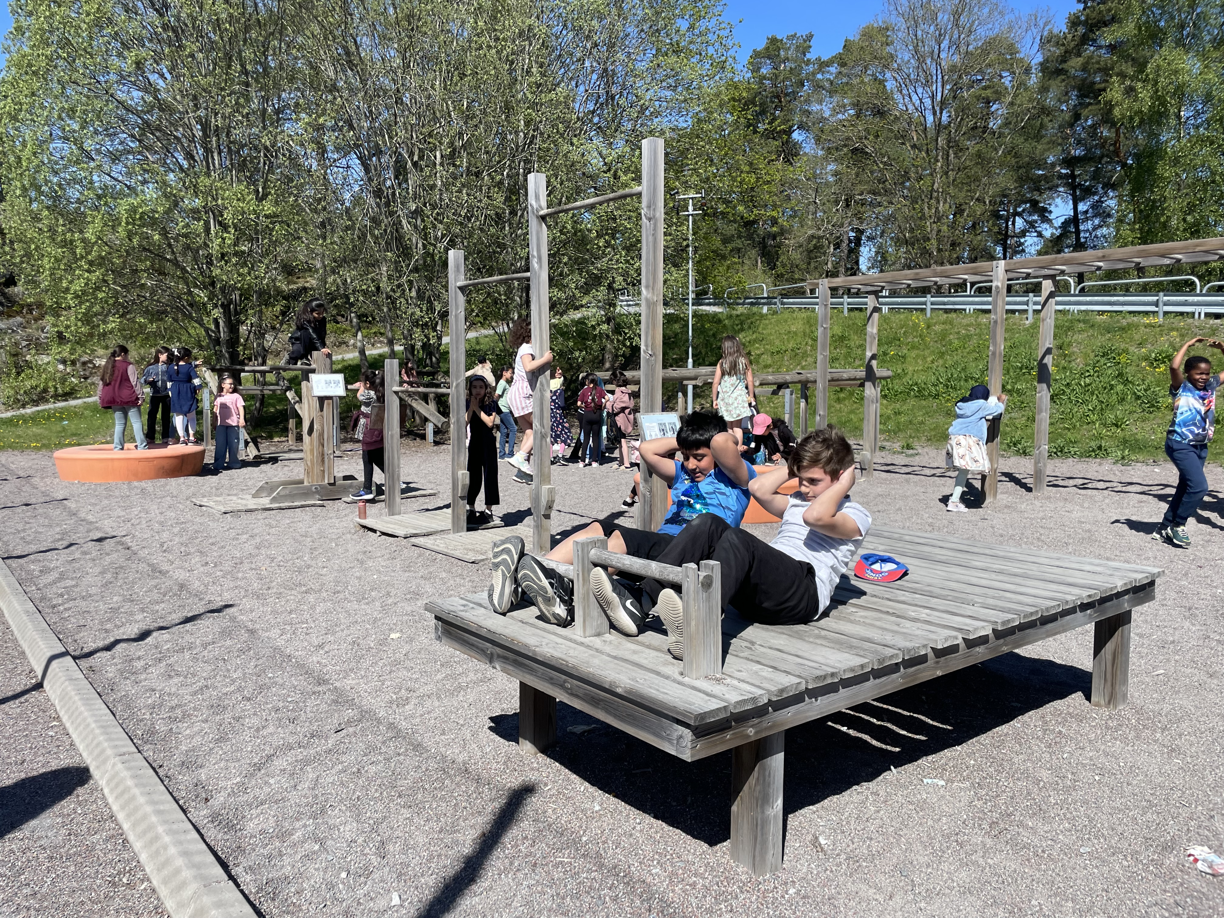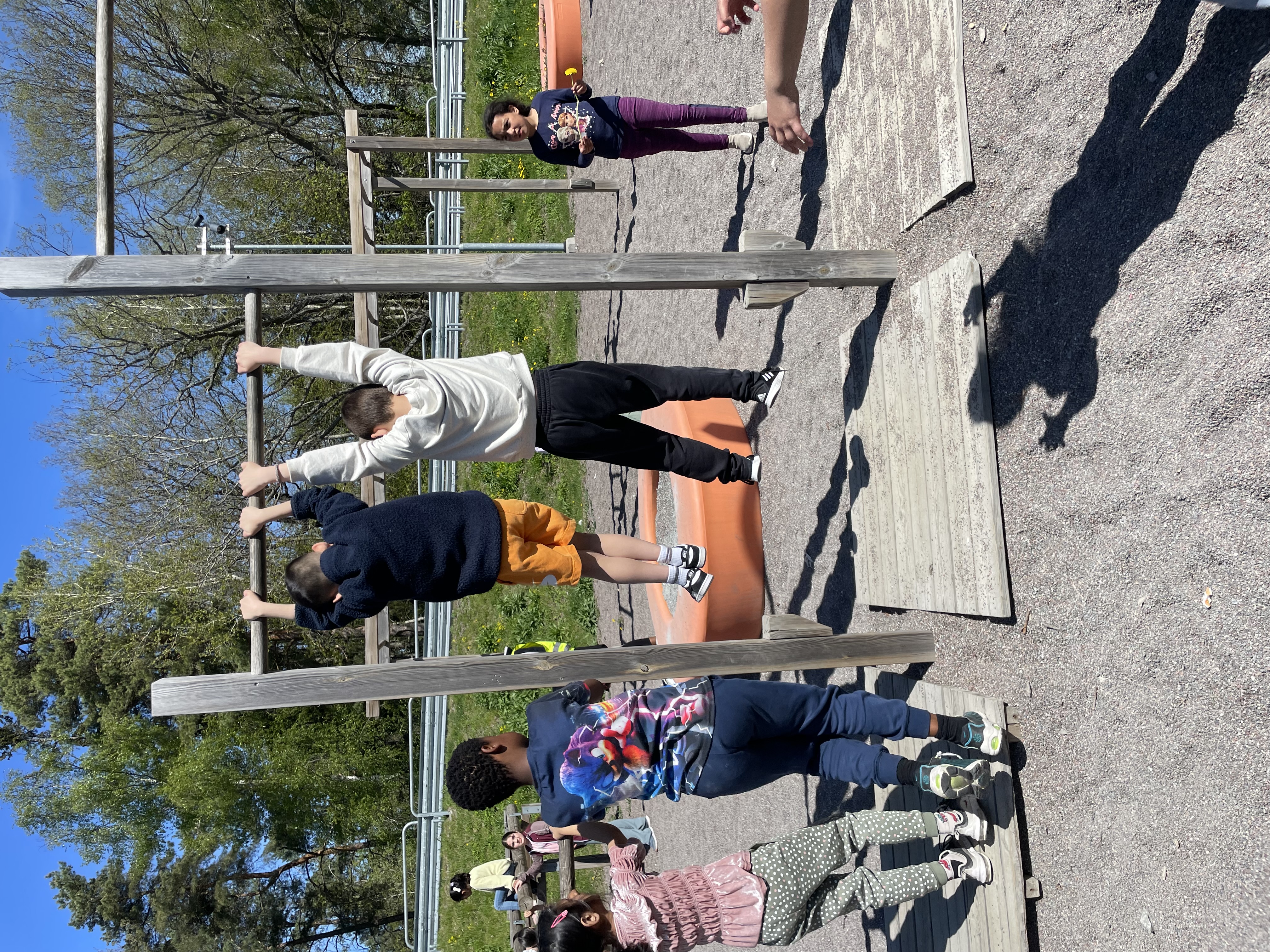 En härlig dag i solen då elever från 2A och några från 2B var ute och hade ute gym! Eleverna fick testa på att träna i den härliga solen, få upp flåset och känna sig starka. Eleverna fick även välja fritt vad de ville göra, då flera valde att köra ”king” – en lek som de lärde sig igår. | ||