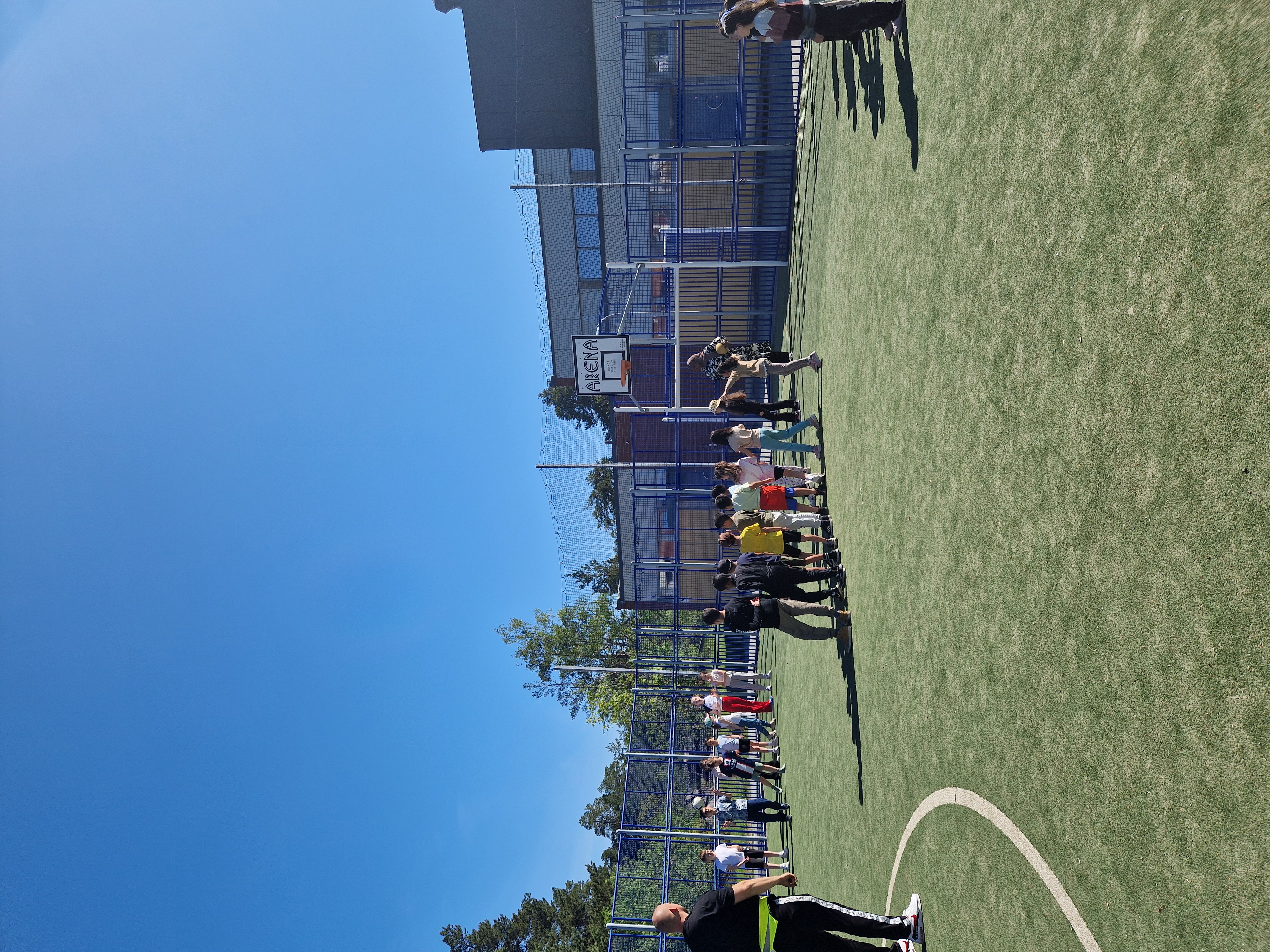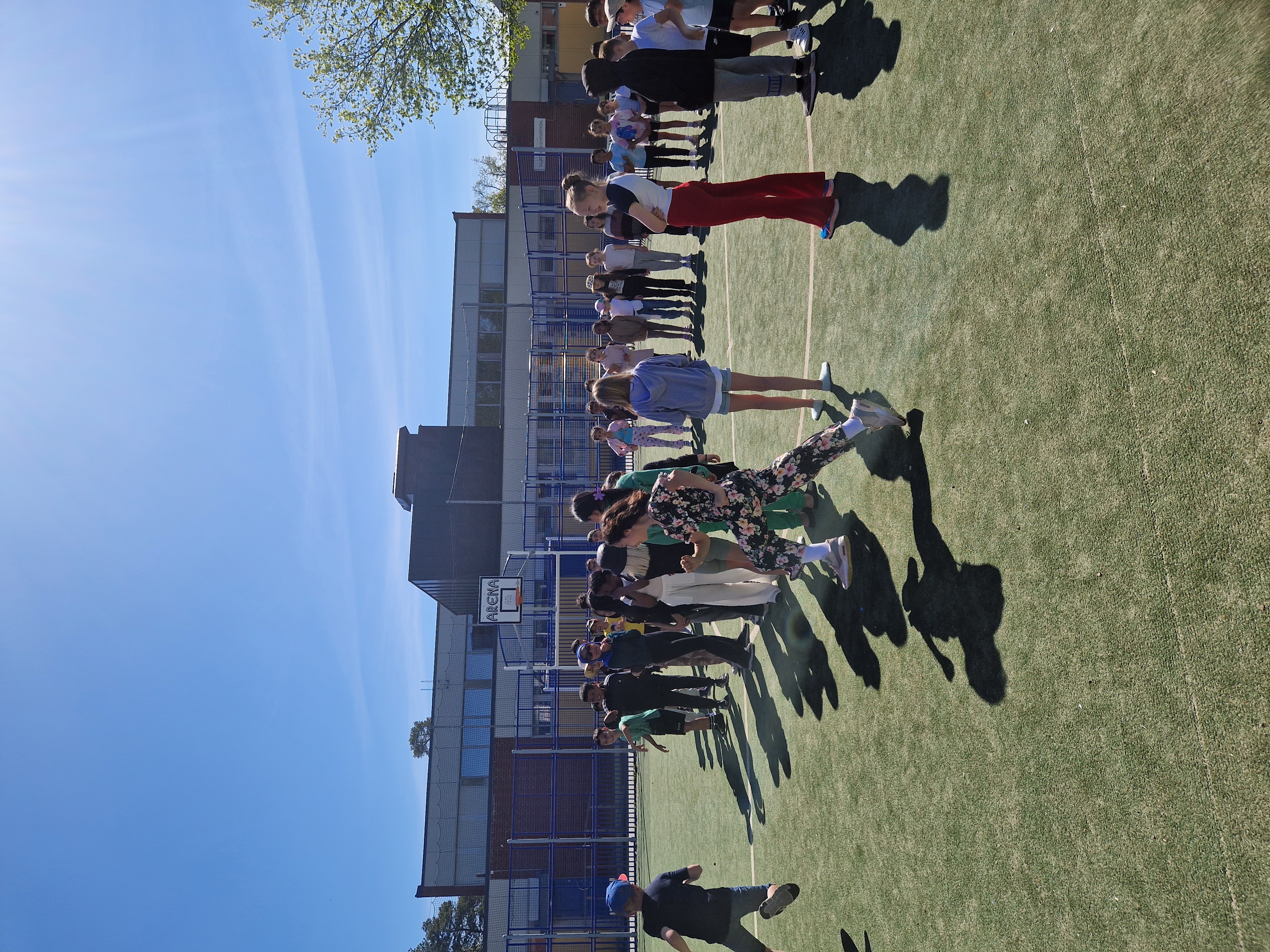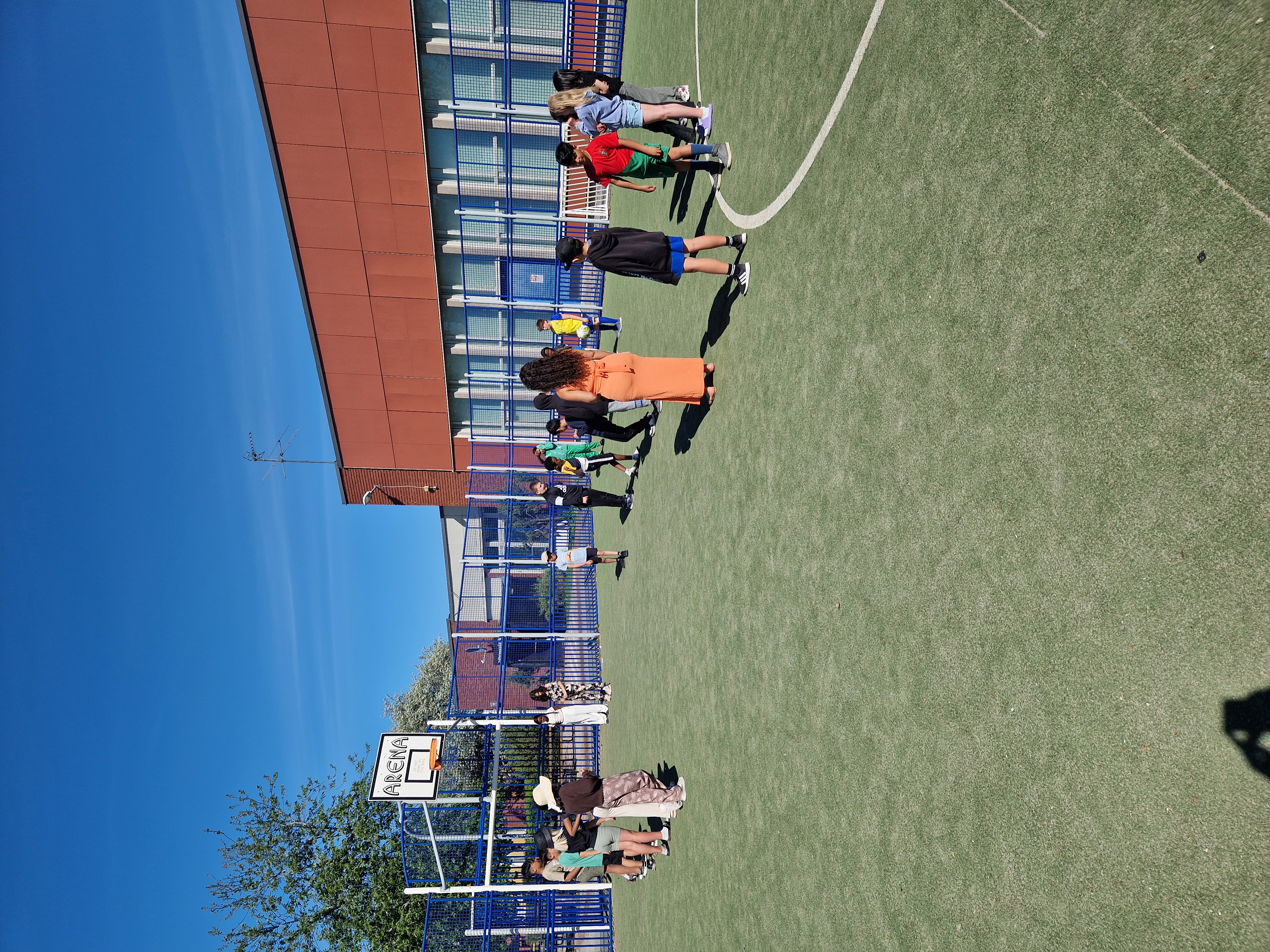 Idag tog vi en promenad runt skolan med eleverna sedan lekte vi "äpplet" och "katt och tåtta".