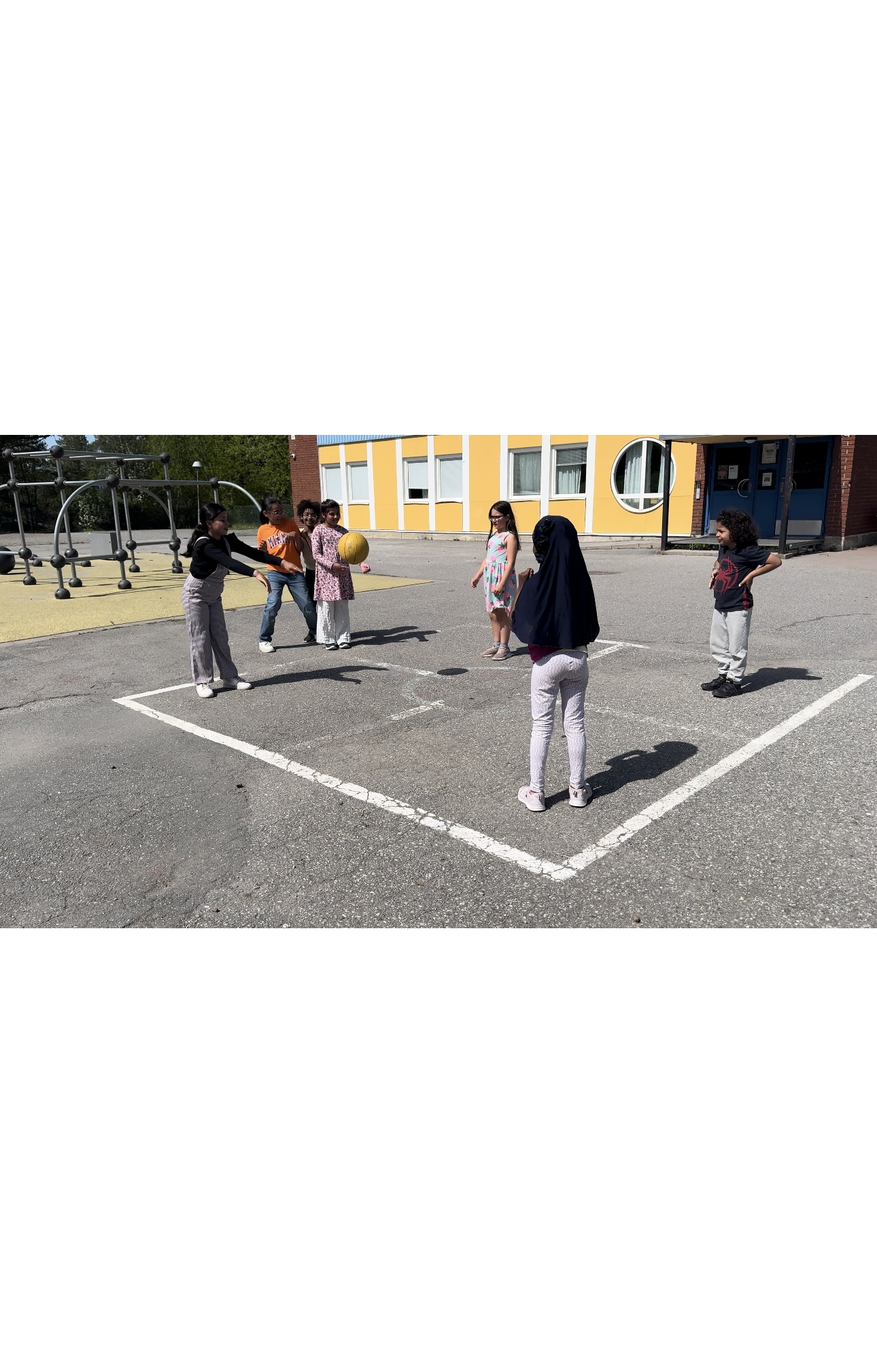 Idag så började vi med uppvärmning, vi höll på i 10 minuter. Sen delades eleverna i två grupper. Där de mötte varandra i en basketmatch. | ||