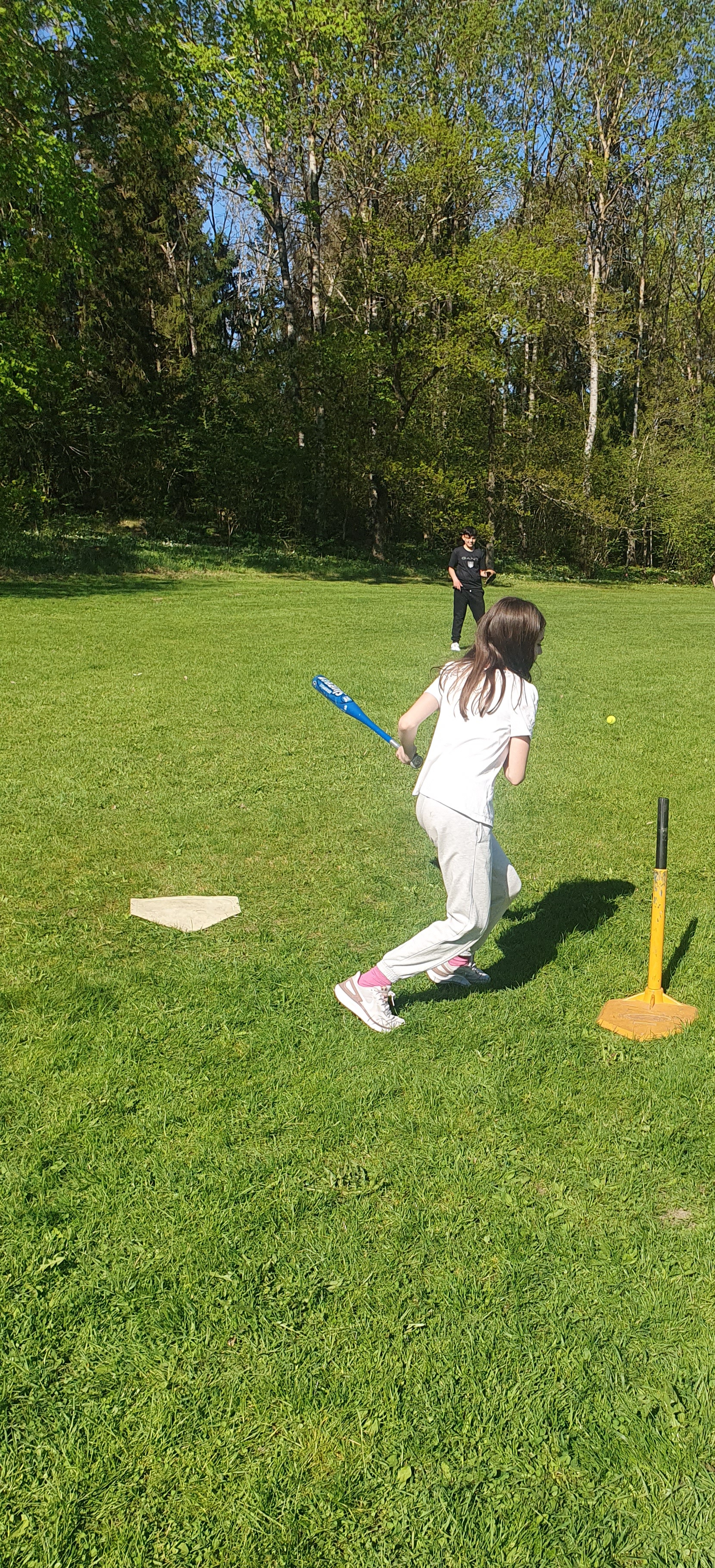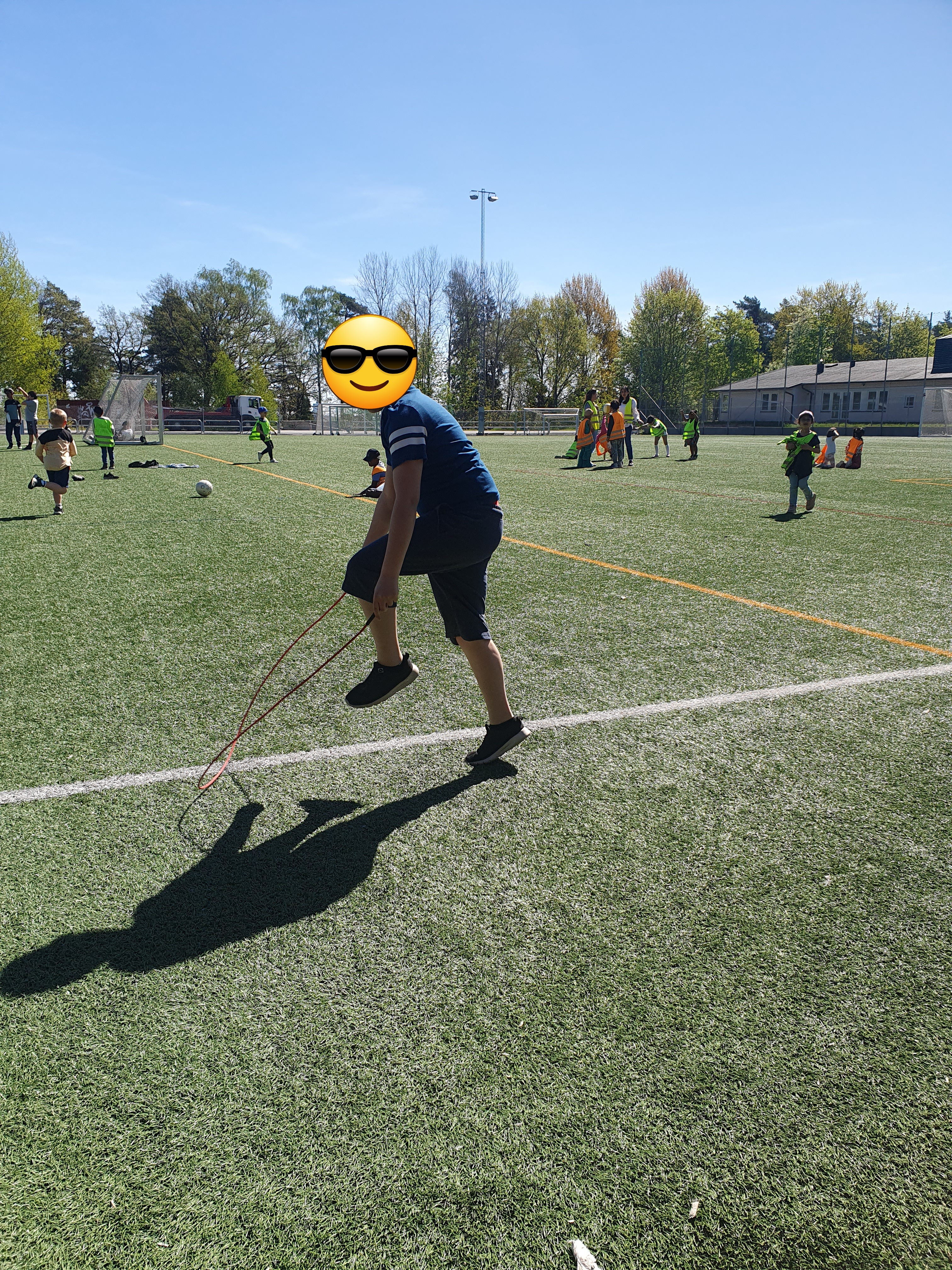 Eleverna spelar basboll, cricket, badminton eller hoppar med säck.